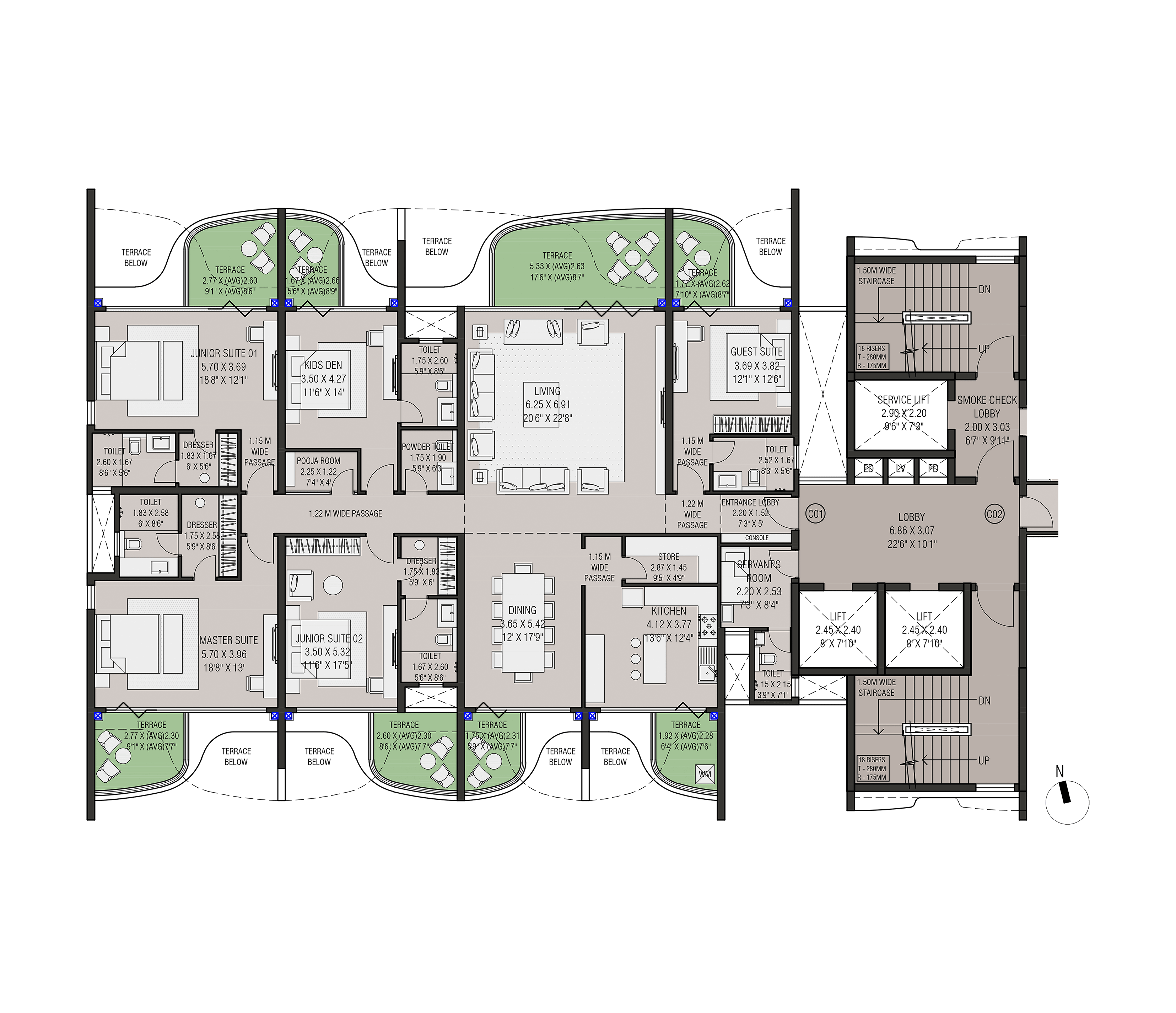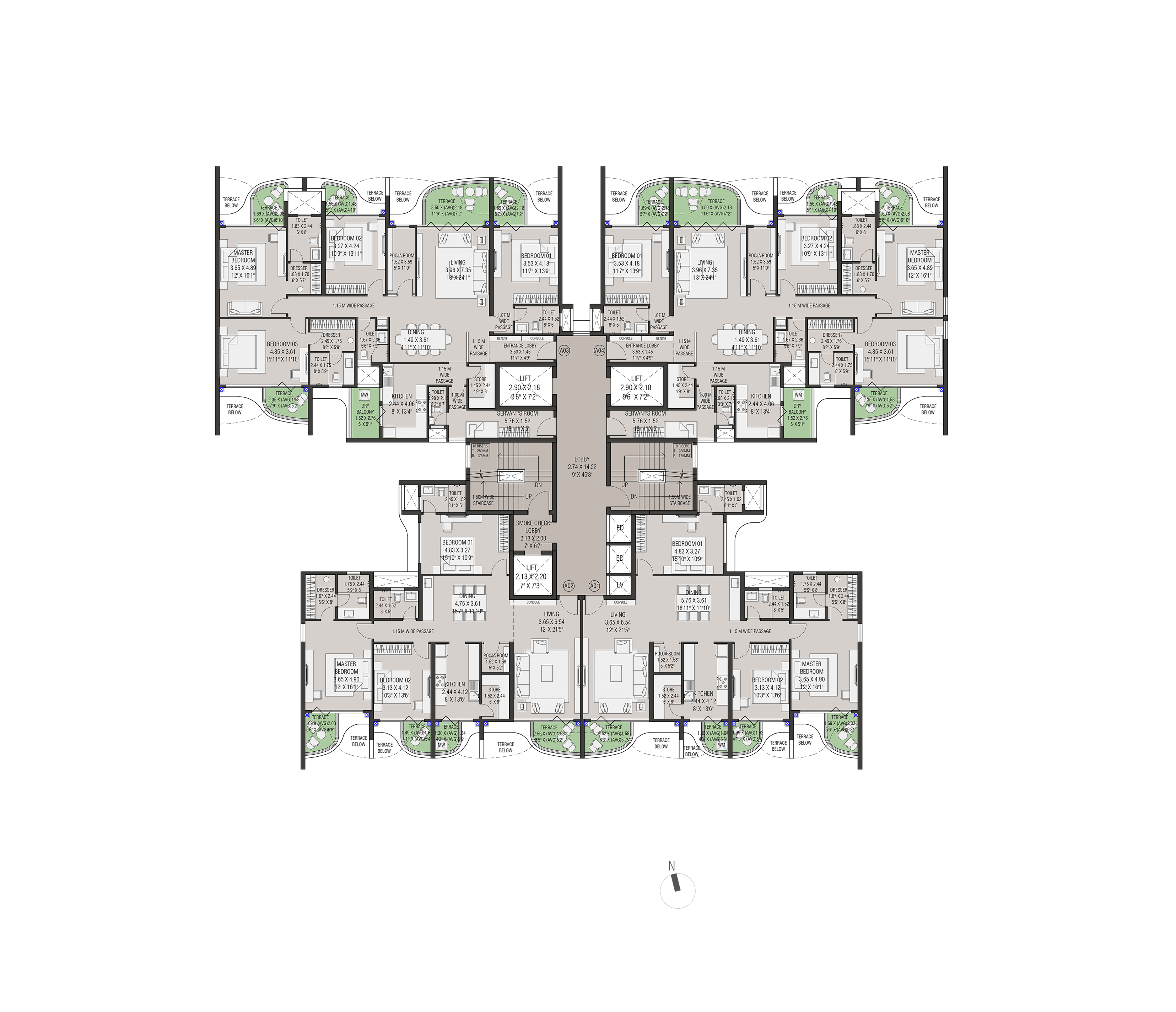 Four slender residential towers atop a landscaped podium with open views on both sides form this exclusive residential project in Nasik. The project has extremely good connectivity and is away from the traffic pollution and noise in a quite zone.