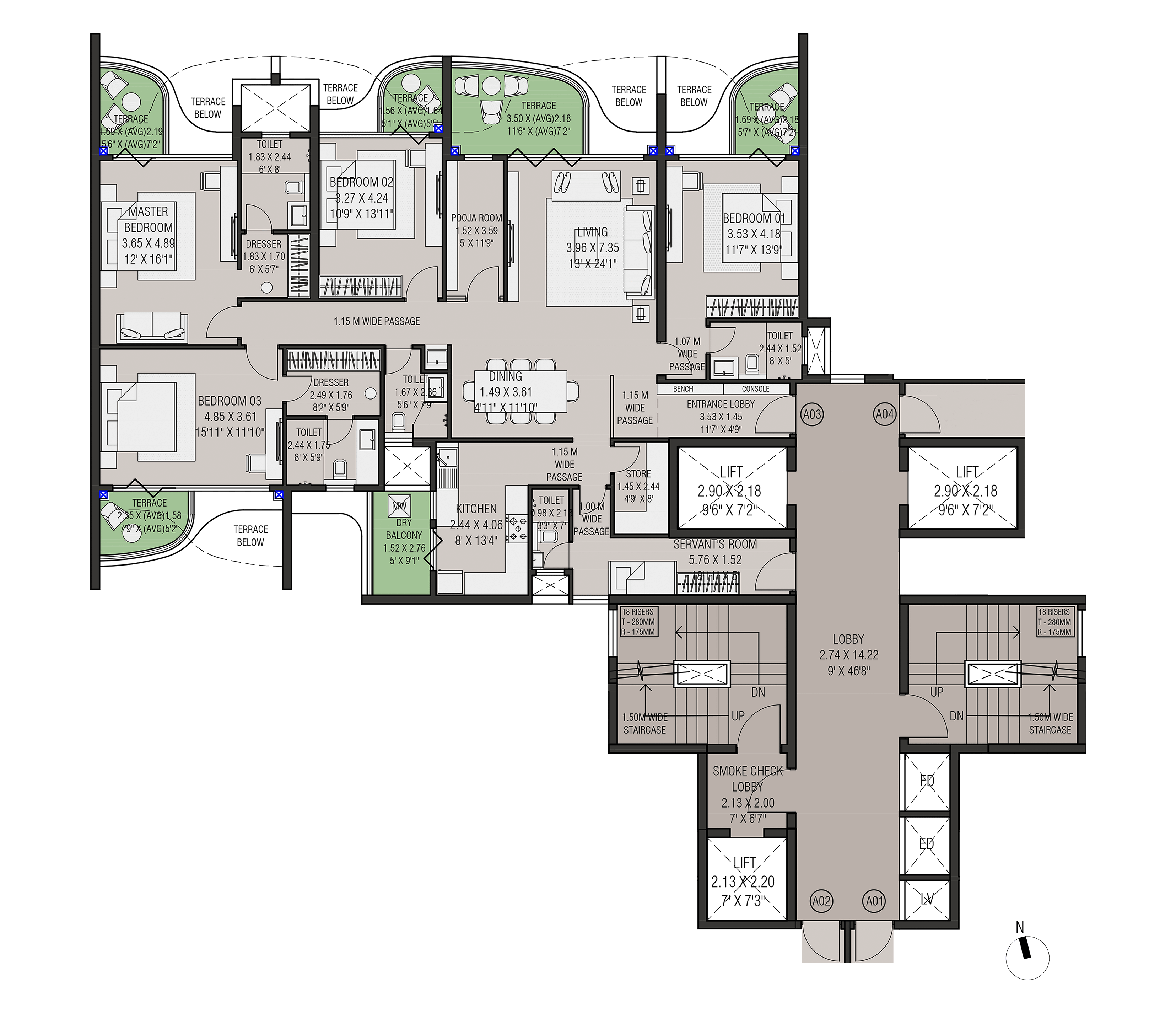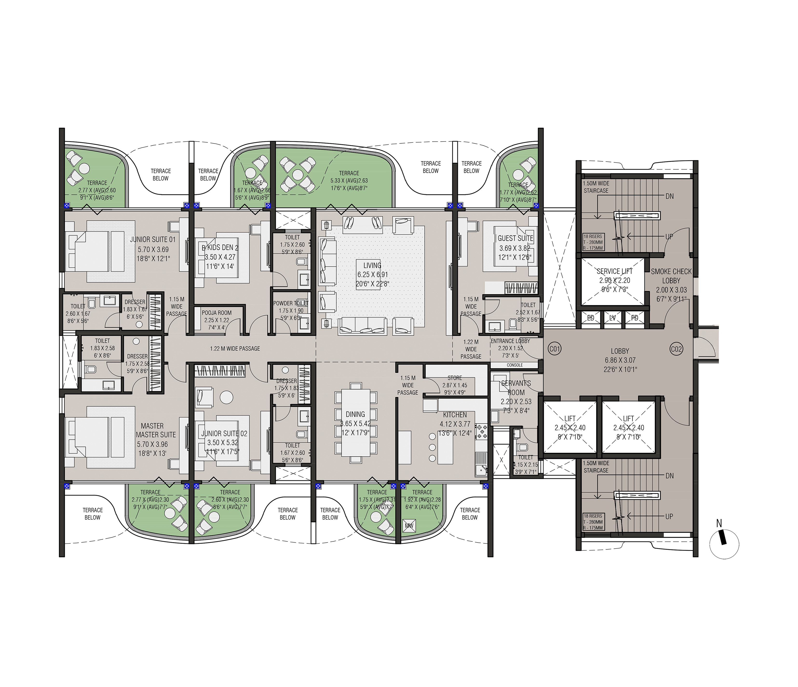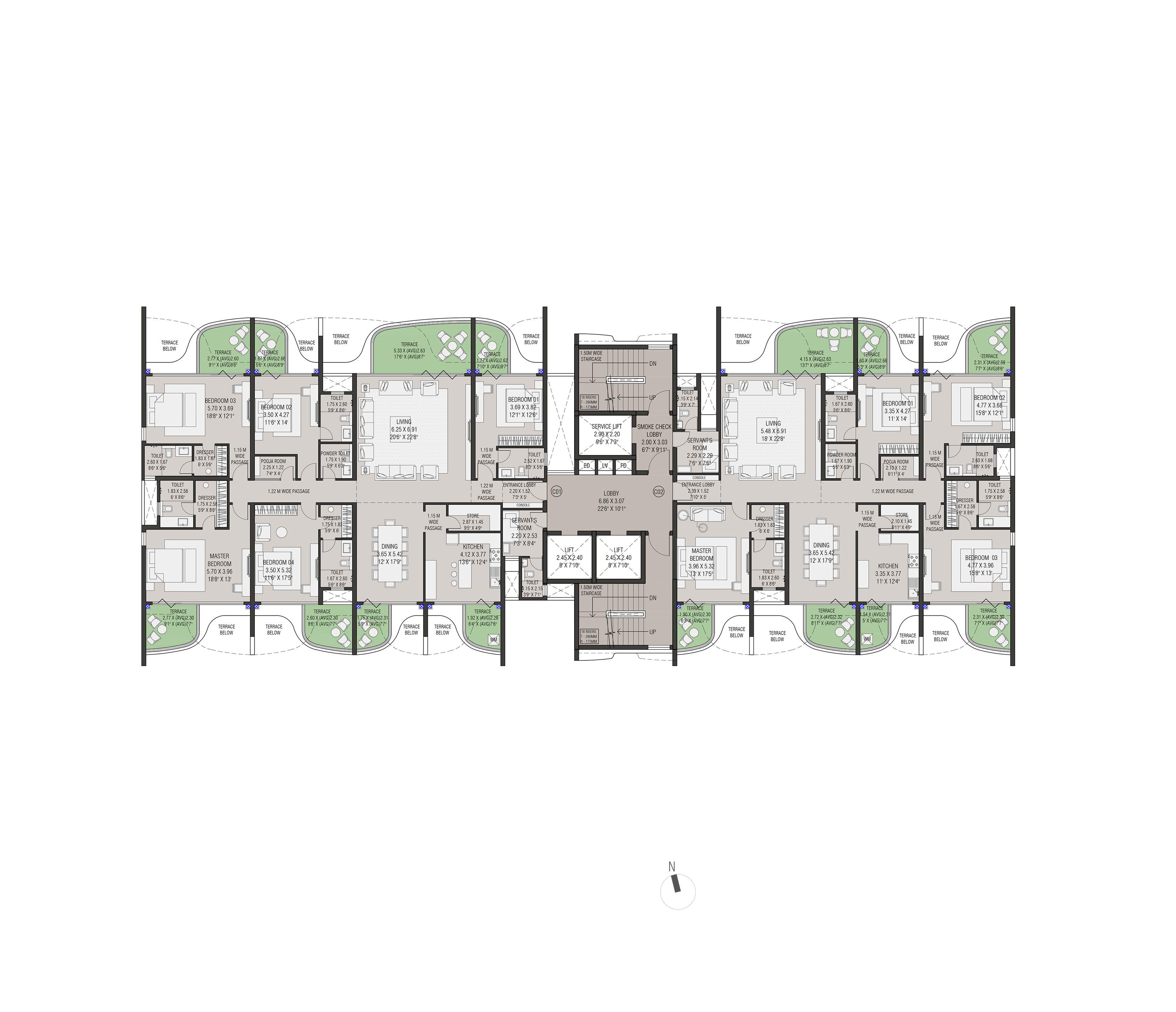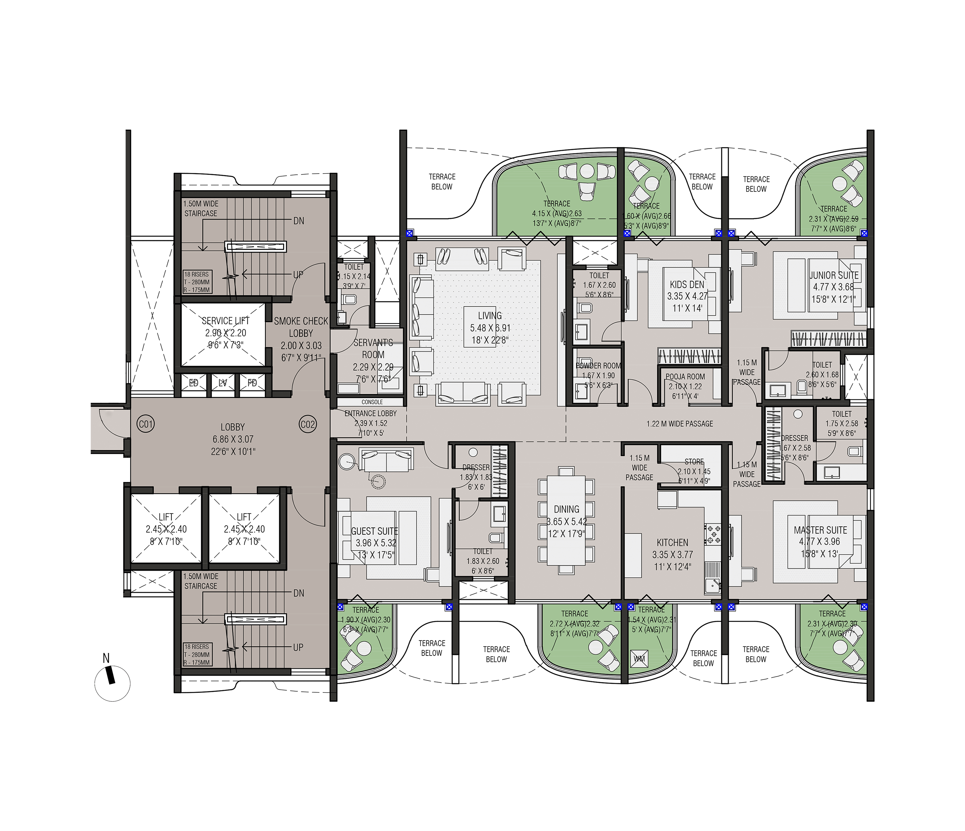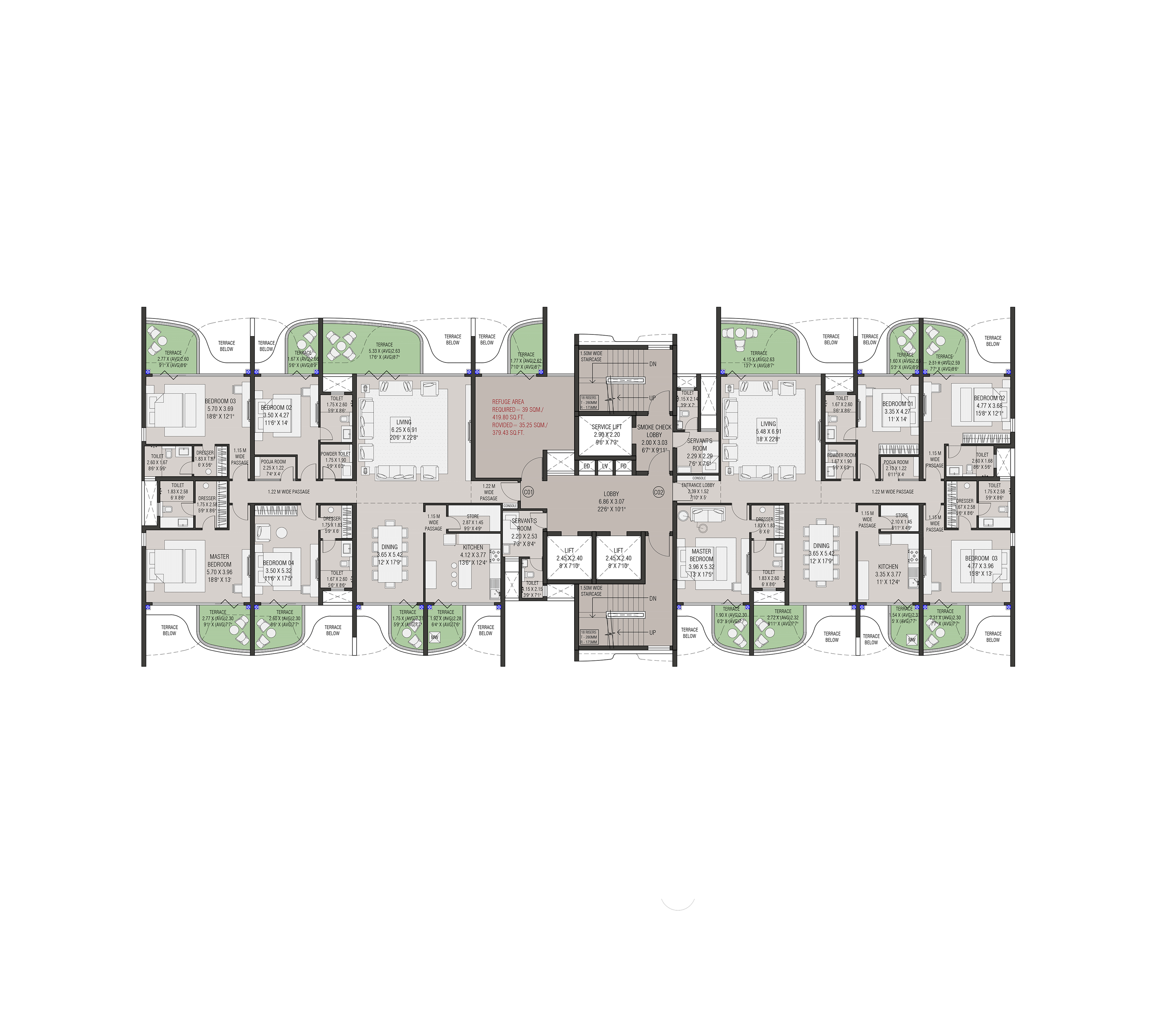 Four slender residential towers atop a landscaped podium with open views on both sides form this exclusive residential project in Nasik. The project has extremely good connectivity and is away from the traffic pollution and noise in a quite zone.