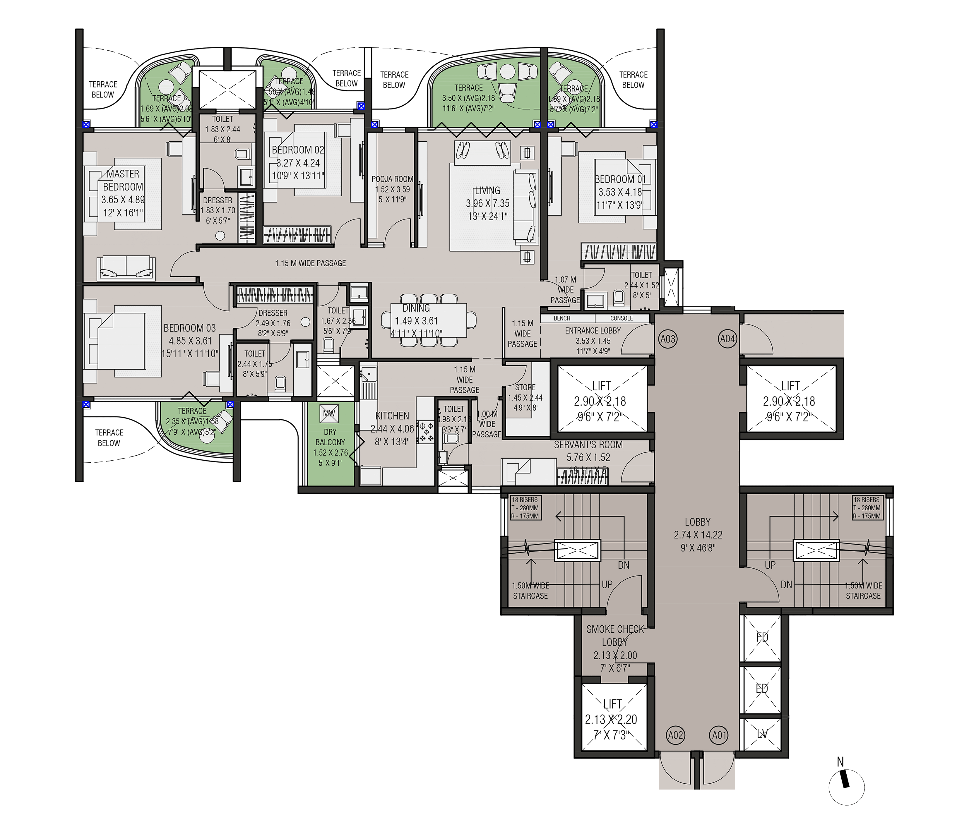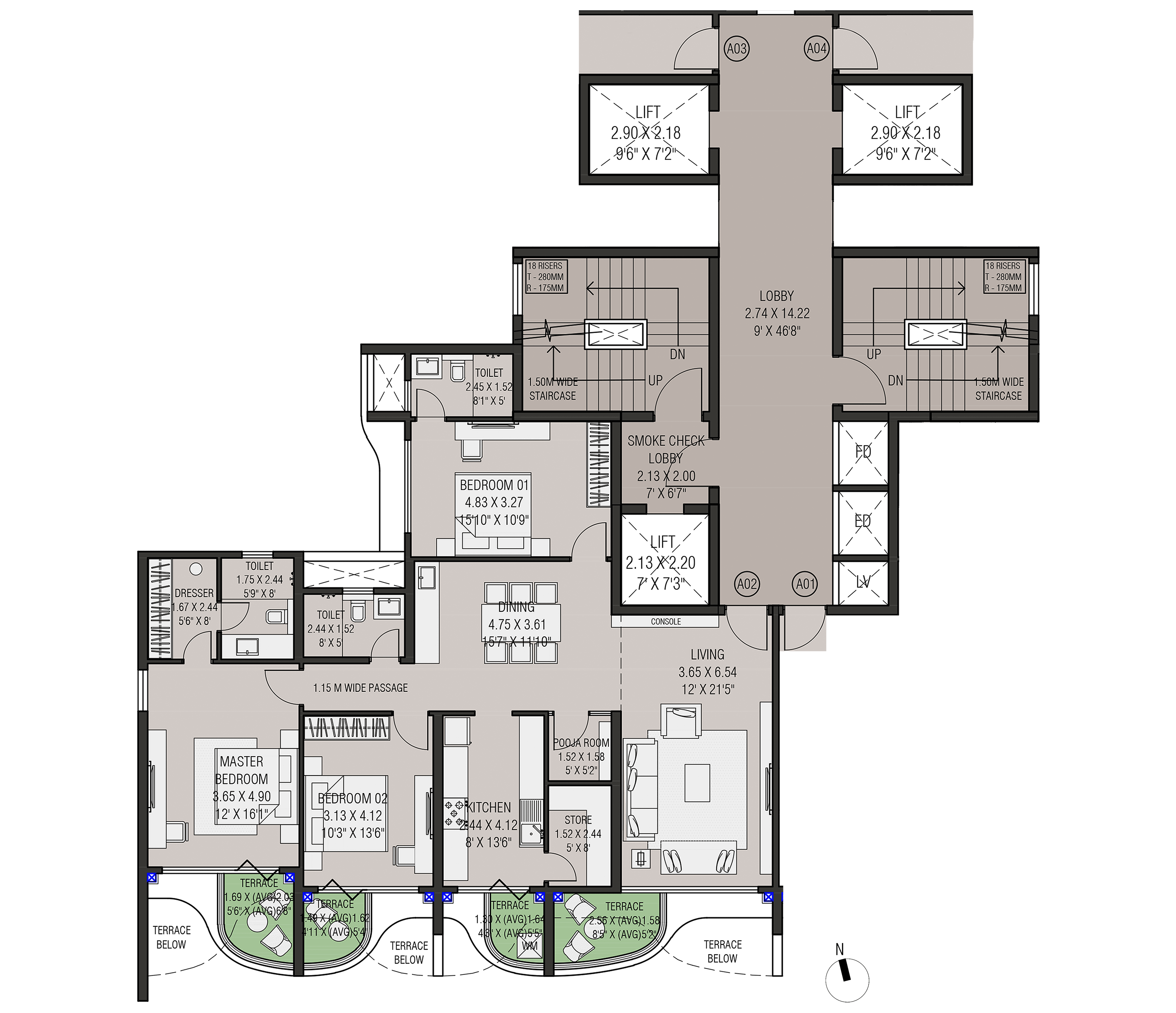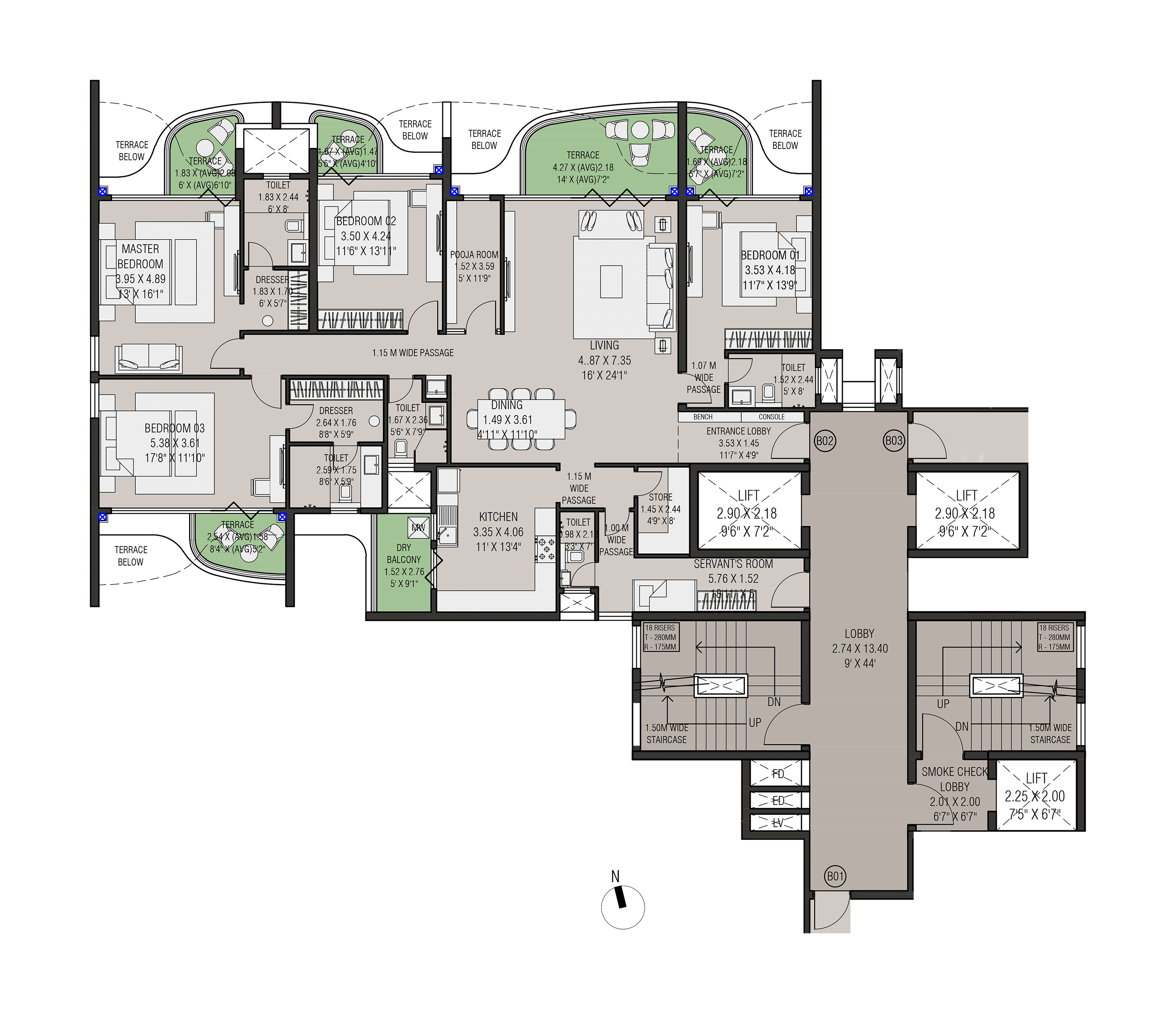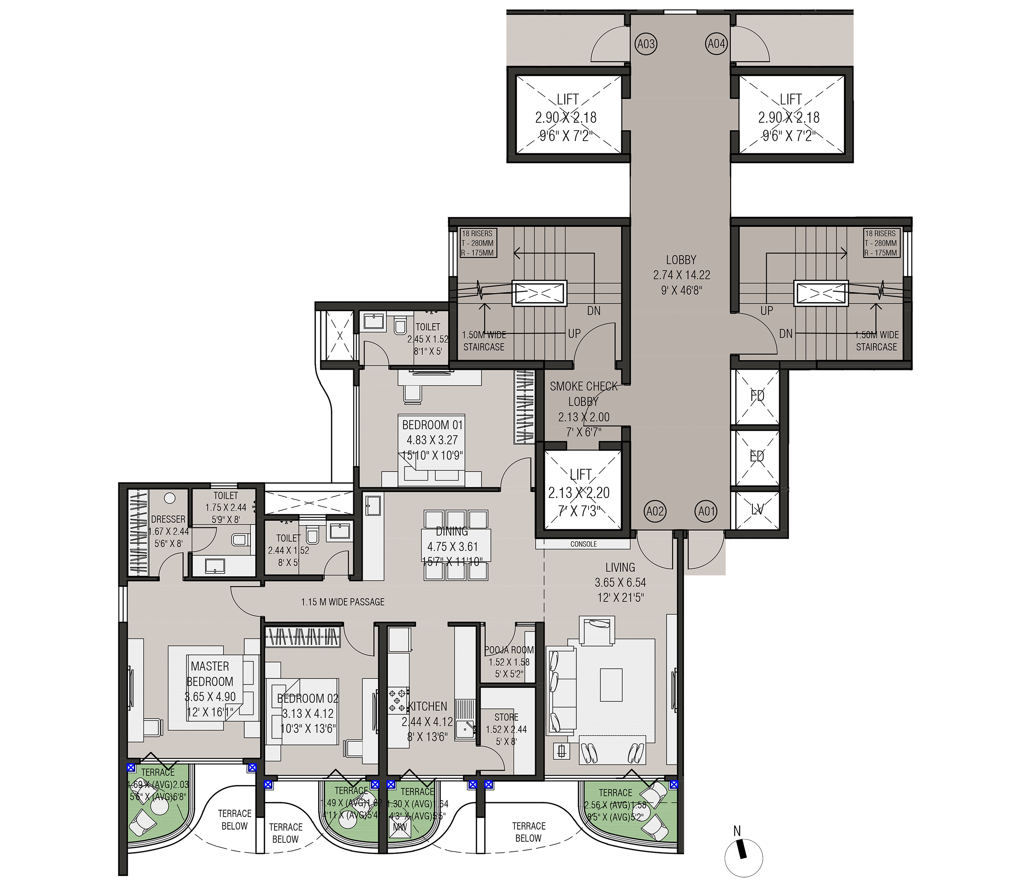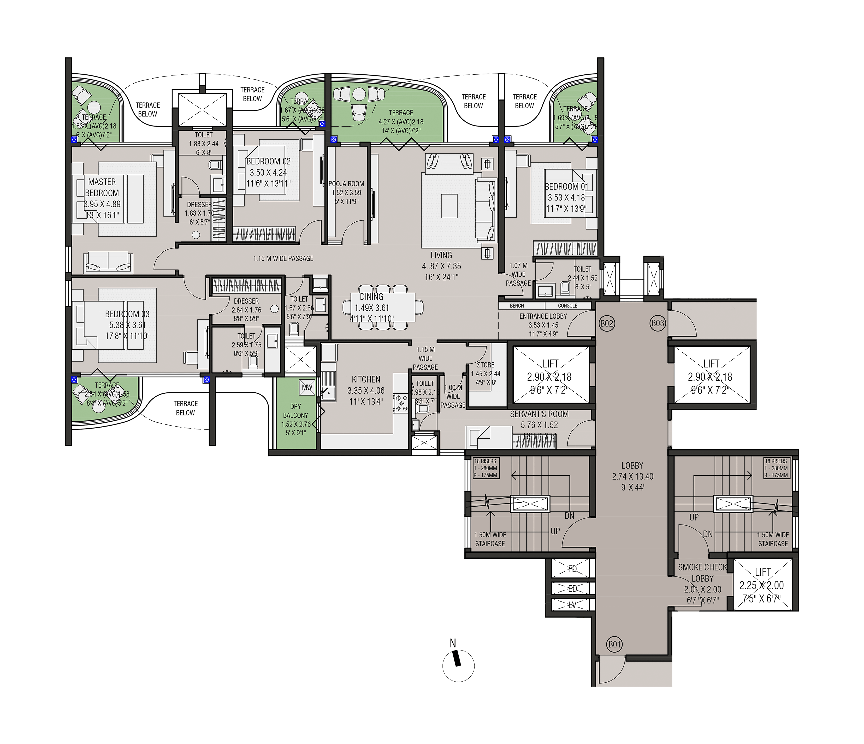 Four slender residential towers atop a landscaped podium with open views on both sides form this exclusive residential project in Nasik. The project has extremely good connectivity and is away from the traffic pollution and noise in a quite zone.